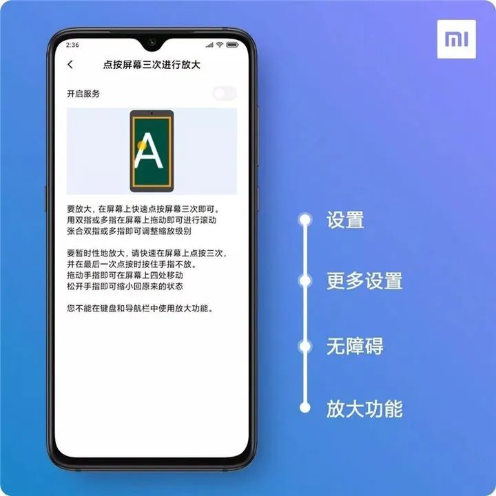 触控屏已经智能手机的主流,然而这种交互方式是天然对视障人士不友好。在取消了实体按键后,视障人士无法通过触摸来定位,这给日常使用带了不便。